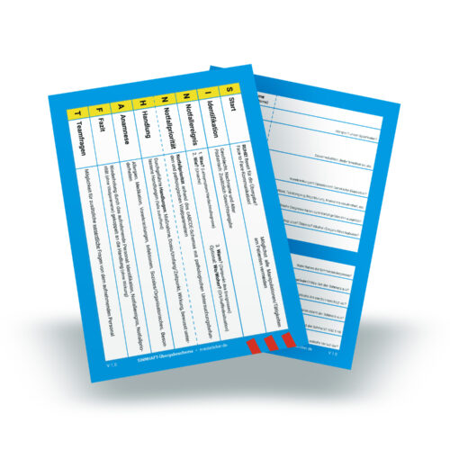 Beschriftbare Taschenkarte für Übergabe (ATMIST, ISOBAR oder SINNHAFT) und Anamnese (SAMPLERS + OPQRST)